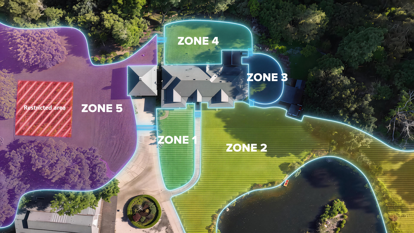 Experience intuitive virtual mapping—define mowing zones, set no-go areas, and create transport paths to seamlessly connect multiple zones for flexible lawn management and a clean, organized layout.