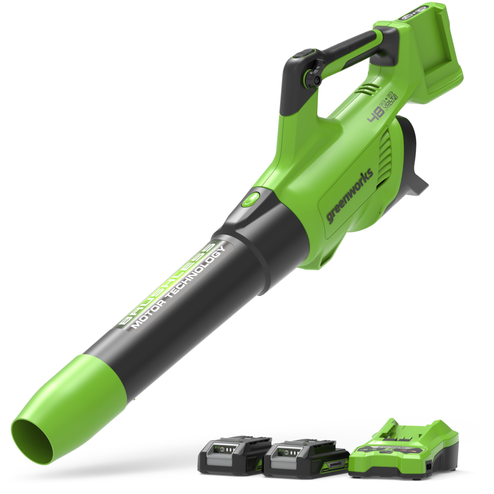 The Greenworks GD24X2ABK2X is a compact and lightweight 48V leaf blower designed for smaller lawns. Powered by an advanced 24V lithium-ion battery, the blower offers strong performance despite its compact size. Convenience is guaranteed with no electric cables to contend with, simply insert the battery and blow.