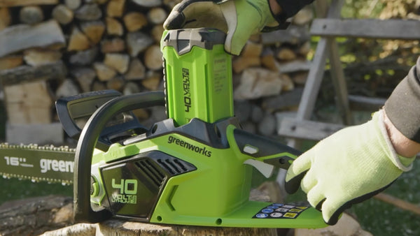 The Greenworks GD40CS18 is a powerful yet lightweightchainsaw with a 40cm cutting bar. Powered by an advanced 40V lithium-ion battery which combines a compact design with powerful performance, as part of the 40V family the battery can be used in any of the other tools available, offering total flexibility and convenience.