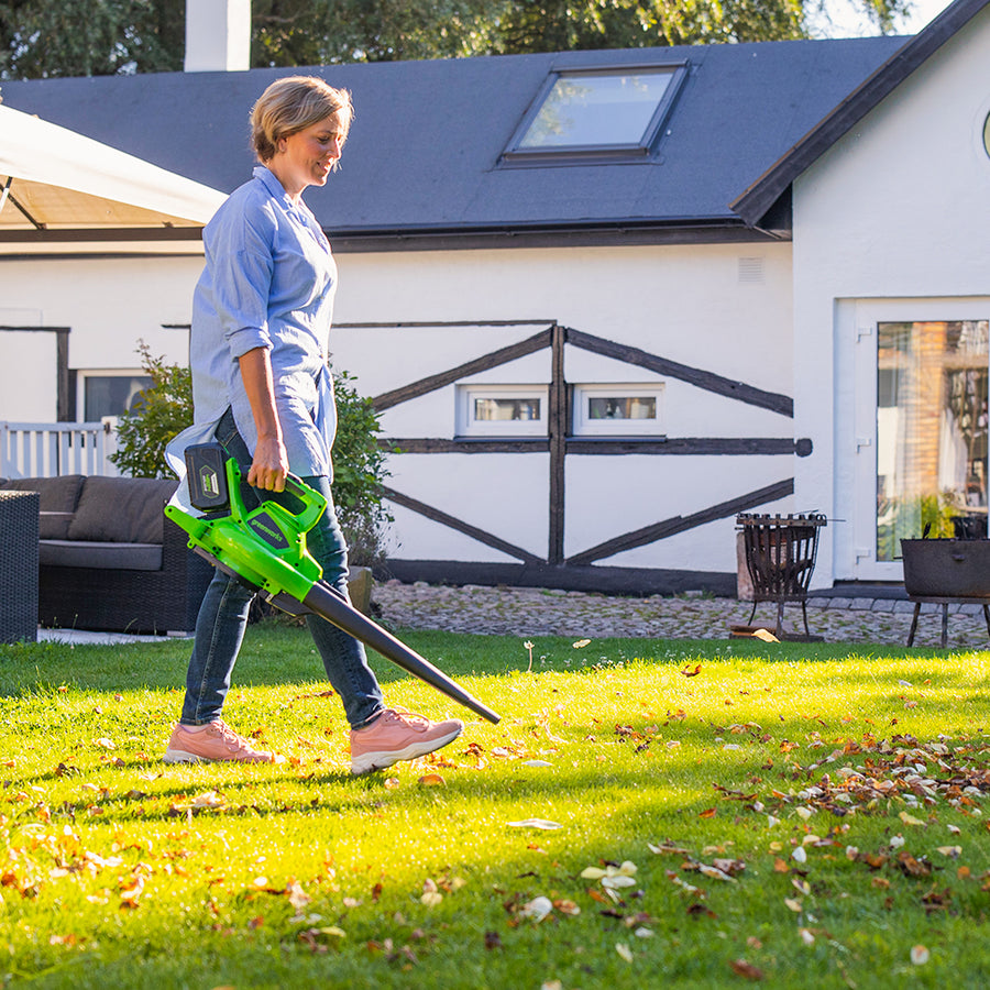 The Greenworks GD40BV is a powerful yet lightweight leaf blower and vacuum for small to medium sized lawns. Powered by a brushless motor and advanced 40V lithium-ion battery which combines a compact design with powerful performance, as part of the 40V family the battery can be used in any of the other tools available, offering total flexibility and convenience.
